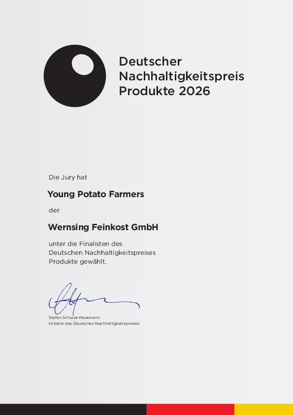 Die Marke Young Potato Farmers repräsentiert langjährige sowie vertraute Partnerschaften, kurze Entscheidungs- & Transportwege und setzt sich zudem für den Erhalt der natürlichen, begrenzten Ressourcen ein. Dies war für uns ausschlaggebend das Projekt in Zusammenarbeit mit der Firma Wernsing Feinkost GmbH ins Leben zu rufen. Es liegt uns besonders am Herzen, eine Wertschätzung für heimische Lebensmittel und unsere tägliche Arbeit zu schaffen.